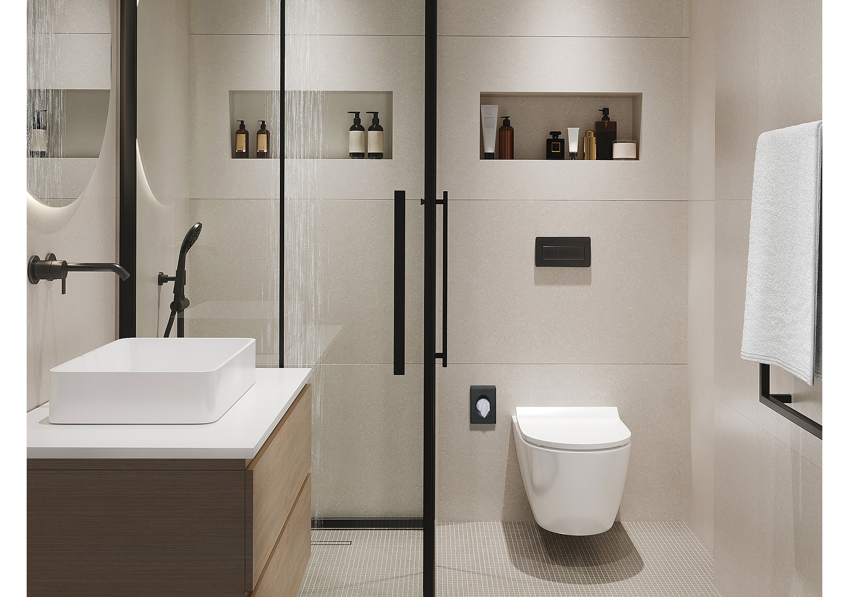 TwinShelf, erhältlich in chrom. Hochwertig und stilvoll für Ihr Badezimmer.