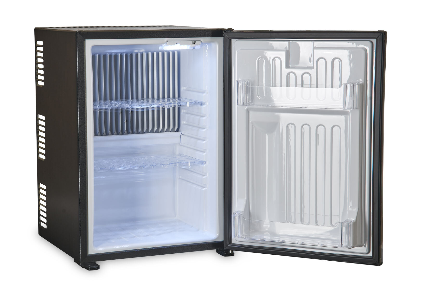 Die stilvolle, thermoelektrische 52-Liter-Minibar bietet geräuschlosen Kühlkomfort und beste Energieeffizienz ihrer Klasse. Sie erfüllt die Bedürfnisse anspruchsvoller Gäste und reduziert die Betriebskosten von Hotels. Geeignet als kleine Kühlschränke für freistehende Platzierung oder Einbau in Möbelstücke dank des serienmäßigen Schnellverschluss-Schiebescharniers. Stilvolle Kühlung mit der ECO Greenstar Minibar.