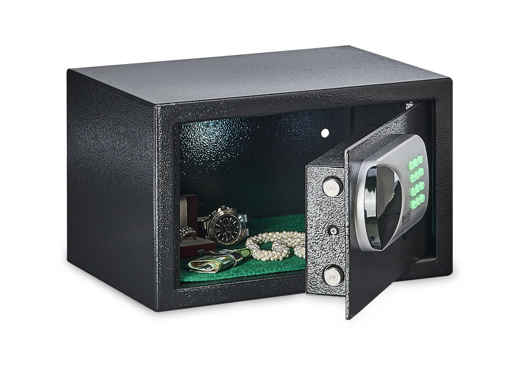 Der Eco Greenstar Safe schützt Ihre Wertgegenstände in Geschäftsräumen, Hotels und Zuhause. Aus massivem Stahl, mit programmierbarem Zahlenschloss und LCD-Anzeige.
