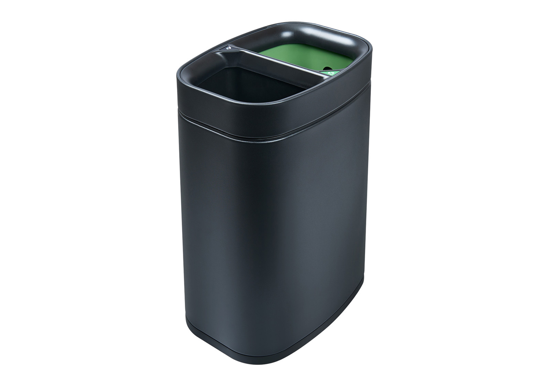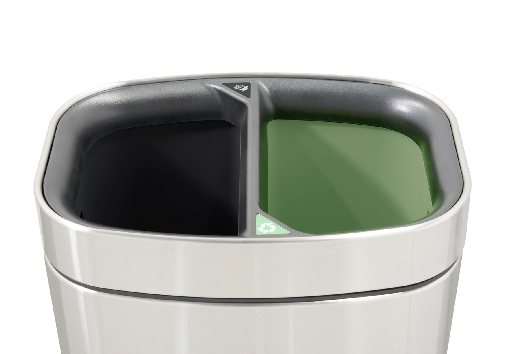 Das System wahrt ein erstklassiges Ambiente, da die Double-Layer-Konstruktion den Müllbeutelrand vollständig unsichtbar macht. Ob in klassischem Edelstahl oder modernem Schwarz – dieses Modell bietet hohe Funktionalität und maximale Langlebigkeit für den Hospitality-Sektor.