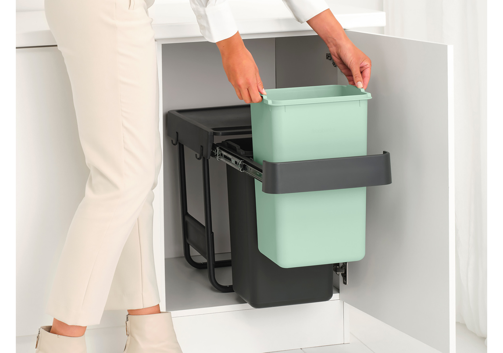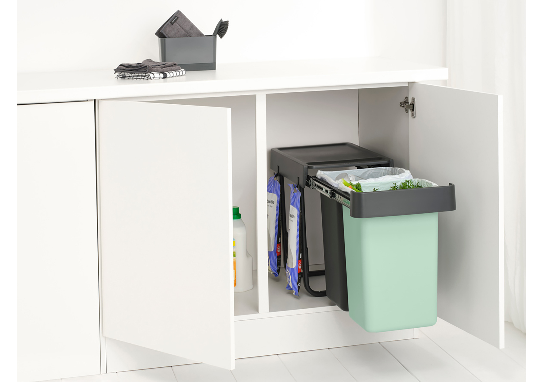 Optimieren Sie Ihre Mülltrennung ohne wertvollen Platz zu verlieren. Dieses Einbausystem lässt sich unsichtbar in fast jeden Service- oder Küchenschrank integrieren und bewahrt so ein exklusives, aufgeräumtes Ambiente in Ihren Räumlichkeiten.
