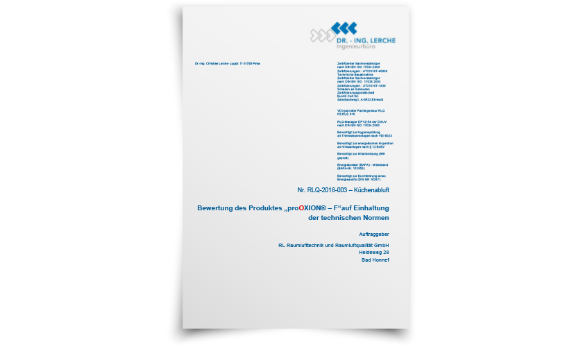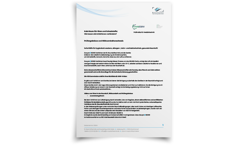 Die Wirksamkeit der proOXION® Ionisierung wurde durch unabhängige, akkreditierte Prüfinstitute umfassend bestätigt.
